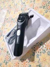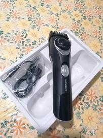 crea linee e bordi precisi su collo e guance con la testina principale del rifinitore. Con i pettini regolabili, taglia i capelli alla lunghezza precisa.