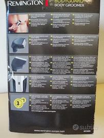 Vendo depilatore uomo Remington Bodyguard, come nuovo, in confezione originale, completo di tutto, causa inutilizzo. Lame rivestite in titanio auto-affilanti, 5 lunghezze preimpostate, pettine rimovibile, lama con punte arrotondate per evitare tagli o graffi, più di 40 minuti di autonomia, batteria ricaricabile, spia luminosa, water resistant, presa antiscivolo. Possibilità di spedizione in tutta Italia.