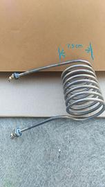 Vendo resistenza a spirale usata ma in ottimo stato e funzionante da 1200 w della marca D.H.E. le dimensioni si vedono sulla foto, ha 8 giri di spirale. Se hai bisogno di altre informazioni mi puoi scrivere. Il prezzo è al pezzo e ne ho due.
