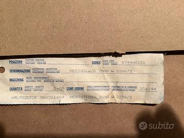 Vendo resistenza NUOVA per pastorizzatore ps.45 CATTABRIGA . INTROVABILE.