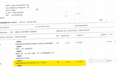 Resistenza acquistata per scalda salviette utilizzo misto IRSAP, ma poi smontata per mancato utilizzo.