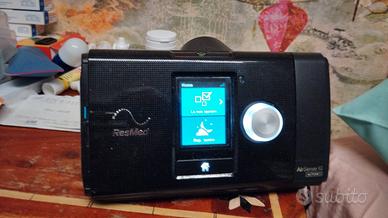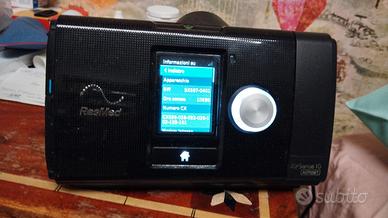 completo di borsa, alimentatore, apparecchio resmed s10 auto set con 10.700 ore di utilizzo completo di scheda SD per registrazione, istruzioni, tubo nuovo imbustato. pronto da usare