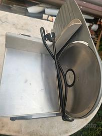 Affettatrice elettrica RGV AUSONIA diametro lama 199mm, misure 40 x 26 mm. Per uso domestico, funzionante, facile da pulire. Alluminio e acciaio.
