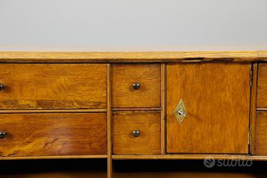Ribalta scrittoio inglese in rovere chiaro,fronte cassetti,fianchi e schiena costruiti interamente in massello,quattro cassetti,quello sottopiano è leggermente più stretto,piano ribaltabile sorretto da tiretti a scomparsa.