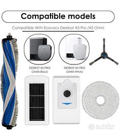 Confezione da 21 pezzi di ricambio X5 Omni compatibili con aspirapolvere robot ECOVACS DEEBOT X5 Omni/X5 Pro Omni, 1 spazzola a rullo, 4 spazzole laterali, 7 sacchetti per la polvere, 5 filtri HEPA, 4 ✅ Nuovo confezione mai aperta! 📦 Spedisco entro 24 ore Compatibilità perfetta: compatibile con aspirapolvere robot ECOVACS DEEBOT X5 Omni/X5 Pro Omni. 21 parti incluse: 1 spazzola a rullo, 4 spazzole laterali, 7 sacchetti per la polvere, 5 filtri HEPA, 4 panni per mocio. Filtri HEPA: 5 filtri HEPA inclusi. Sacchetti per la polvere: 7 sacchetti per la polvere inclusi. I nostri sacchetti X5 Omni della versione più recente