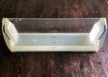 Cassetto contenitore da sportello di apertura in plastica bianca e coperchio in plastica trasparente, misure L. 42 x P. 10 x H. 14 cm per frigorifero rex electrolux modello FI 22/10 FA condizioni buone, no scheggiature, ma con qualche segno sulla plastica trasparente. Adatto per diversi modelli di frigorifero da incasso electrolux con le stesse misure.