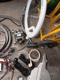 Scheda elettrica modulo senza cablaggio Euro 100,00 Scheda frontale con dispai e maniglie senza cablaggio Euro 40,00 Obloo completo di maniglia e cerniera Euro 50,00 Guarnizione Obloo Euro 40,00 Anelli tensione (molla) della guarnizione anteriore e posteriore Euro 20,00 Elettroserratura completa di asta di sblocco Euro 20,00 Tubo dalla vasca alla pompa - soffietto scarico 6 spire - completo di pallina e fascetta stringi tubo Euro 25,00 Cavo di alimentazione completo Euro 30,00 Ruota del cestello - Puleggia - Euro 35,00 Alette trascinatore (n. 3) all'interno del cestello Euro 20,00 Resistenza 1.700W. completa di sensore temperatura Euro 30,00 Tubo drenaggio scarico acqua Euro 10,00 Cassetto detersivo scorrevole Euro 20,00 Cinghia dal motore alla puleggia Euro 10,00 Elettrovalvola 2 uscite 7 litri Euro 20,00 Molla vasca con ghiera di plastica (n.2) Euro 10,00 Motore trifase Euro 100,00 Cablaggio completo Euro 60,00 PIU' SPESE DI SPEDIZIONE CHE VARIANO DA PEZZO A PEZZO.