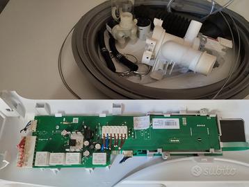 pompa scarico acqua, guarnizione oblo, valvola di ritegno carico acqua, scheda elettronica completa di frontalino digitale