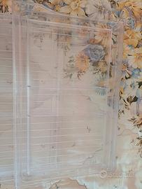 4 ripiani interni, 3 riparti per la porta del frigo (x bottiglie, x barattoli, x uova e burro), cassettone per le verdure, un cassetto divisorio, tutto in plastica resistente