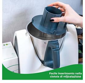 UTILIZZO INTUITIVO: Inserire fino a 1 litro di ingredienti nel boccale, posizionare il Miximizer fissandolo alle scanalature interne, chiudere il boccale con il coperchio e il misurino, quindi avviare il Bimby.