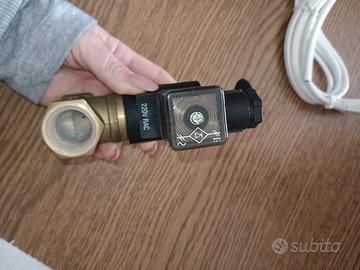 Vendo kit rilevatore di gas Tecno System EVMS, composto da un'unità di allarme e un'elettrovalvola per l'interruzione del flusso di gas.