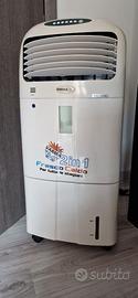 FrescoCaldo rinfresca l’aria creando un microclima di benessere e diventa anche riscaldatore. Privo di unità esterna è dotato di ionizzatore che purifica l’aria generando ioni negativi. Possibilità di selezionare la funzione di sola ventilazione per il ricircolo e la purificazione dell’aria. Veloce da spostare grazie alle rotelle, consuma 75 W (fresco), 1000 W (caldo) e per il super caldo ventilato 2000 W.