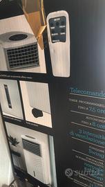 Condizionatore rinfrescatore elettrico ( non e’ un condizionatore) si mette l’acqua con ghiaccio e butta aria fresca per oltre 9 ore. Usato 3 volte. Compreso di telecomando.
