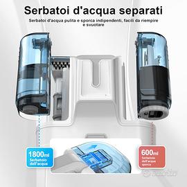 Doppio serbatoio: lava divani e aspira acqua è dotato di un ampio serbatoio per la pulizia da 1800 ml e di un serbatoio per l'acqua sporca da 600 ml che separa l'acqua pulita da quella sporca, garantendo una pulizia efficace e una facile manutenzione.