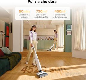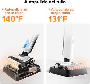 - Controllo tramite APP per adattare l'esperienza di pulizia alle proprie precise esigenze. Con l'APP si possono sbloccare una gamma di funzioni intelligenti per la personalizzazione: timer di pulizia e asciugatura automatica, regolazione temperatura acqua, controllo potenza di aspirazione e altro ancora.