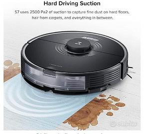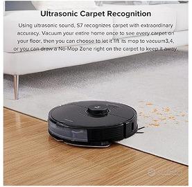 Vendo Roborock S7 Robot Aspirapolvere con Alexa 2500Pa Monitoraggio app Mappatura multilivello Rilevamento tappeti Spazzola in gomma galleggiante intelligente per animali domestici, pavimenti duri (nero) - acquistato per 700€, oggi prezzo prodotto nuovo 448€. Vendo per acquisto modello più recente, perfettamente funzionante + 5/10 pannetti di scorta e scatola originale. Aspirazione HyperForce: Il robot S7 combina un'aspirazione iper-forza 2500Pa con una pressione costante di quasi 600 g per una, pulizia fino a 3.000 volte al minuto, pulendo i pavimenti in profondità ed efficacemente. Pulizia intelligente: Questo aspirapolvere utilizza il suono ultrasonico, il mop si solleva quando la moquette viene rilevata, agganciata e finita, puoi pulire pavimenti duri e aspirare i tappeti in una sola pulizia ed evitare brutte strisce di sporco. La navigazione LiDAR accurata crea mappe dettagliate e identifica le stanze fino a quattro livelli. Impostazione di zone vietate e muri invisibili per limitare l'accesso alle aree problematiche. Spazzola flottante migliorata e interamente in gomma: Le lame a spirale della spazzola interamente in gomma agitano meglio, migliorando la resistenza al groviglio dei capelli. È più durevole. La nuova spazzola principale flottante della spazzatrice segue saldamente il terreno, anche su superfici irregolari, per fornire una migliore pulizia. Più grande e più resistente: una pattumiera da 470 ml immagazzina la polvere giorno dopo giorno. Un serbatoio dell'acqua da 300 ml può pulire in profondità fino a 200 mq (2150 piedi quadrati) 6 in una sessione. Ad alimentare tutto è una batteria agli ioni di litio da 5200 mAh che si accende fino a 3 ore7 con una singola carica. Controllo totale a portata di mano: App, Controllo Amazon Alexa e Siri Shortcuts, monitoraggio esatto di percorsi di lavaggio e aspirazione e tappeti, regolazione della forza di aspirazione, forza delle vibrazioni, sequenza di pulizia e livello dell'acqua.