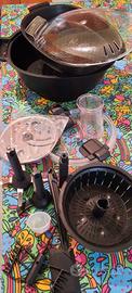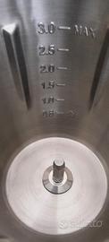 COME NUOVO PERCHÉ USATO POCHISSIME VOLTE. E' un multicooker dotato di connessione Wi-Fi per l’aggiornamento del ricettario che ha gia' 500 ricette, ciascuna con guida passo passo per la preparazione. Funzioni principali, sia manuali che automatiche: pesare, frullare, emulsionare, impastare, affettare, montare e cuocere, anche a vapore. Grande capienza di lavorazione del boccale in acciaio inox: ben 3.5 litri, che permette di soddisfare anche famiglie numerose. • Dispone di: display touch screen da 7,7 pollici, manopola di controllo rapido retroilluminata, 12 livelli di velocità, inverter della lama per le preparazioni più delicate come i risotti. • Accessori: Coperchio preparazione/cottura; Coperchio frullatore; Cestello a vapore interno; Vaporiera con vassoio e coperchio; Albero con pala miscelatrice; Albero con pala a farfalla; Albero con lame acciaio inox; Albero di prolunga con disco affetta/grattugia; Disco lama/grattugia con albero di prolunga; Spatola • Temperatura regolabile: 37-130°. Timer: 0-90 minuti. Bilancia integrata con accuratezza di 5 gr.; Potenza 1000 Watt, motore a bassa rumorosità. 220V-240V - 50-60HZ. Completo di imballaggio originale e manuale di istruzioni. Ritiro diretto a carico dell' acquirente a Bergamo.