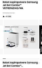 Vendo Robot Aspirapolvere Samsung Jet Bot Combo™ VR7MD96514G/WA