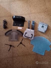 Robot come puoi vedere con scatola originale, libretto di istruzioni, tutti gli accessori in dotazione: base di ricarica,2 mop lavapavimenti, telecomando con pile,spazzolina,2 spazzole laterali+ 2 di ricambio, serbatoio acqua 150ml, filtro aria di ricambio.