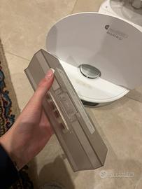 Batteria durata 150 Minuti, capacita 3L, presenta 2 contenitori uno dell’acqua pulita e uno dell’acqua sporca, 2 moci con una velocità 180giri,un raccoglipolvere, una spazzola a rullo, una spazzola per gli angoli, stazione di ricatica+ corda di ricarica. Tutto compreso di scatola. Bellissimo prodotto forse uno dei migliori ma vendo solo perchè per il mio anniversario ne ho ricevuto un altro nuovo