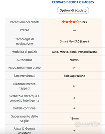 Come da titolo vendo ECOVACS Deebot OZMO 905 usato ma in buone condizioni. Vendo completo degli accessori visibili in foto: