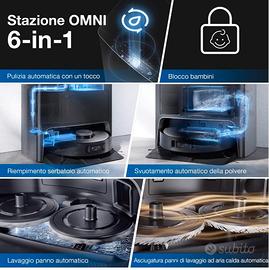 ECOVACS DEEBOT X1 OMNI, Robot Aspirapolvere con Funzione Lavaggio, Stazione di Pulizia Multifunzionale, Autopulizia Automatica, 5000pa, Rilevamento Ostacoli 3D, Batteria 260min, Assistente Vocale Yiko.