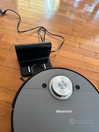 Robot intelligente Hisense RVCL 144AB con app inclusa per controllarlo da remoto, potenza di 4000Pa e motore BLCD, aspira e lava con degli stracci appositi forniti. Basetta di ricarica veloce inclusa. Tutto il kit originale incluso. Autonomia 150 min.