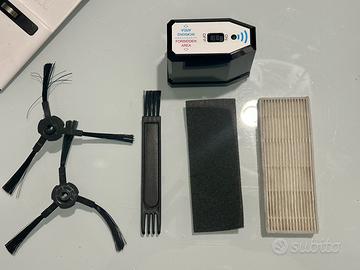 Robot aspirapolvere iLife A6 Beetles perfettamente funzionante e con numerosi ricambi originali. Dal punto di vista costruttivo il vero punto forte di questo A6 è il suo spessore di appena 8 cm. Per qualcuno vorrà dire poco ma per chi ha divani o letti bassi è sarà probabilmente uno dei pochi robot per la pulizia capaci di intrufolarsi ovunque. La novità tecnica di questo A6 è poi il rullo inferiore, quello che raccoglie lo sporco e lascia che sia aspirato. È completamente in gomma, in modo da raccogliere ogni briciola e non avere fastidiosi inceppamenti con i capelli nelle spazzole. Il risultato è discreto e l'assenza di spazzole da pulire è un vantaggio! Non è la solita cinesata, ma un prodotto valido che funziona in modo ottimale. Attenzione non è una lava pavimenti, ma un aspirapolvere automatizzato.