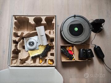 Robot aspirapolvere iRobot Roomba 780 in buone condizioni. Confezione originale con accessori e ricambi originali (come in foto). Batteria originale sostituita con batteria al litio più leggera e con maggiore autonomia.