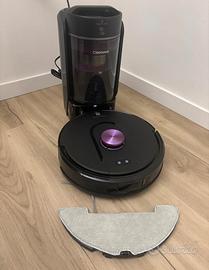Vendo ultimo a stock ancora imballato.Stazione di svuotamento automatico senza sacco – fino a 90 giorni senza manutenzione. Dopo ogni ciclo di pulizia, svuota automaticamente il contenitore della polvere nella base da 4L in soli 10 secondi. Il design senza sacchetto elimina la necessità di costosi ricambi. Il serbatoio è lavabile e mantiene l’ambiente igienico e privo di odori. offre una potenza di aspirazione fino a 15.000Pa grazie al motore brushless ad alte prestazioni. 3 impostazioni di aspirazione: modalità silenziosa (60 dB), modalità standard e modalità potente. In modalità silenziosa, i livelli di rumore sono di soli 60 decibel.Navigazione laser LDS 360° e mappatura intelligente. Grazie alla tecnologia LDS LiDAR 360°, il robot aspirapolvere lavapavimenti con mappatura crea una mappa dettagliata della tua casa, riconoscendo mobili, scale e cavi per pianificare il percorso di pulizia più efficiente. Funziona perfettamente anche al buio e può salvare fino a 5 mappe per case su più piani.Sistema 3 in 1: spazzare, aspirare e lavare.Con la sua batteria ad alta capacità, può funzionare fino a 170+ minuti e coprire superfici fino a 200 m² con una sola ricarica. Quando la batteria scende sotto il 15%, torna automaticamente alla base, si ricarica fino all’80% e riprende da dove aveva interrotto.Pulizia personalizzata e gestione mappe Supporta fino a 5 mappe diverse e fino a 15 zone vietate o muri virtuali. Puoi nominare ogni stanza, impostare l’ordine di pulizia o pianificare una pulizia mirata in base alle tue necessità.Controllo intelligente tramite App e voce Controlla tutto facilmente tramite l’app dedicata: programmazione orari, scelta modalità, zone vietate, muri virtuali e mappatura multi-livello con Alexa, Google Assistant e Siri per il comando vocale, ed è incluso anche un telecomando per un uso semplice.Funzionamento silenzioso e modalità “Non Disturbare”.