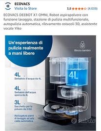 Robot aspirapolvere con funzione lavaggio, stazione di pulizia multifunzionale, autopulizia automatica, rilevamento ostacoli 3D, assistente vocale Yiko. Perfettamente funzionante, solo da sostutuire i moci rotondi.