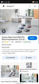buongiorno, per natale mi è stato regalato questo robot aspirapolvere della hoover, modello robo. com 3 nella colorazione rossa. purtroppo io l'ho provato ma mi rendo conto che per casa mia non và bene la pulizia con i robot, ho troppi tappeti, ho due mezzi gradini tra reparto giorno e notte e dovrei ogni volta aiutarlo a salire e scendere, ho alcuni caloriferi proprio all'altezza esatta che lui non li rileva, ci passa sotto ma si incastra perfettamente e suona.