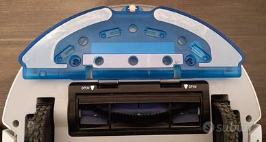 Il robot aspira e lava contemporaneamente. Completo di manuali, accessori e scatola d'imballaggio originale. Controllo tramite app iOS/Android e assistenti vocali Alexa, Google Assistant.