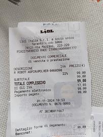 Si vende per inutilizzo Robot Aspirapolvere SilverCrest. Perfettamente funzionante. Comprende anche due spazzole di ricambio, filtro, spazzola per la pulizia e telecomando. Lava ed aspira. Acquistato a novembre, garanzia di due anni come da scontrino