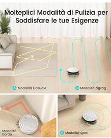 * il robot aspirapolvere può passare in modo flessibile tra diverse modalità tramite l'APP: ➊Pulizia organizzata➋Pulizia casuale➌Pulizia spot➍Pulizia lungo il muro➎Pianificare la pulizia➏Pulizia manuale.Passa liberamente tra diverse modalità e 3 livelli di potenza di aspirazione come desideri tramite l'app.