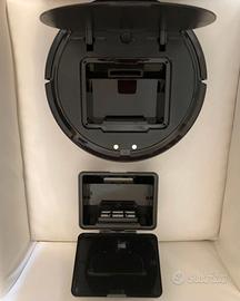Robot apirapolvere senza cavo per uso domestico WJIN, colore nero, controllabile con app, peso Kg 1, altezza cm 6,5, diametro cm 27, potenza di aspirazione 1800PA, ricarica USB, batteria inclusa (3000mAh, 11.1Wh), scatola raccogli polvere con capienza 400 ml, area di pulizia mq 150, 2 spazzole rotanti, 1 panno per spolverare posizionabile con velcro, 1 spazzola a pennello, 1 cavo USB, manuale di istruzioni disponibile in 6 lingue, materiale plastica ABS, tempo di ricarica 5h con tensione inferiore a 5V, rumorosità < 40dB, adatto alle più comuni varietà di pavimenti (ceramica, legno, marmo, tappeti), nuovo, testato da associazione consumatori quindi funzionante, la scatola risulta danneggiata in alcuni punti
