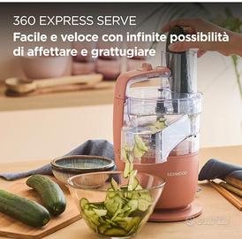 ROBOT DA CUCINA COMPATTO: potente, in grado di tritare, affettare, grattugiare e servire direttamente nel piatto, così piccolo da poter essere riposto sul piano di lavoro della cucina o in un cassetto. Marca Kenwood. Colore rosso argilla. Potenza 650W. Tolto solo il cellophane dalla confezione originale, praticamente nuovo.