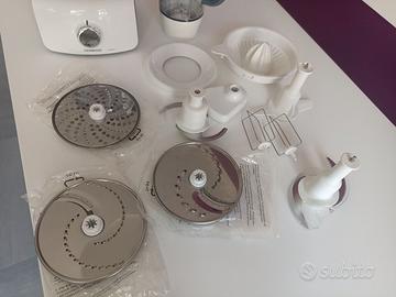 Robot da cucina Kenwood multipro FDP60 Accessori: - lama seghettata - lama impastatrice -lama - maxi calotta - 3 dischi - doppia frusta - mini recipiente - frullatore -spremi agrumi Usato pochissime volte No scatola
