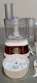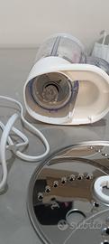 Funzione pulse, funzione impastatrice, struttura in plastica. Dischi/lama come in foto per affettare e tritare.