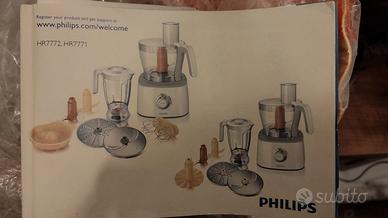 robot da cucina multifunzione Philips con boccale e lame per tagliare, impastare, montare, tagliare a juliette, grattugiare. completo di istruzioni e tutti gli accessori.