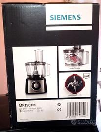 Robot da cucina a marchio Siemens modello MK3501M design molto elegante, colore nero e acciaio inox spazzolato, molto compatto e tante funzioni intelligenti.