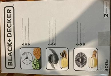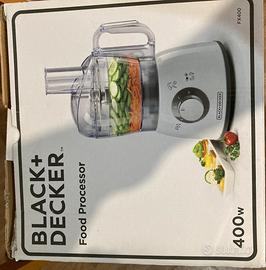 Robor da cucina da 1.2 litri con una potenza massima di 400 Watt. Dotato di due velocità con funzione a intermittenza, ha in dotazione un disco per affettare, un disco per emulsionare e montare, una lama tritatutto, l'accessorio per impastare e la spatola per amalgamare gli ingredienti. L'aiutante ideale per ogni preparazione in cucina. Nuovo imballato mai utilizzato