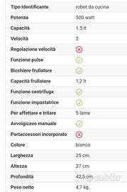 Vendesi Robot da cucina 500 w Marca Girmi. Di alcuni anni fa, quindi usato, ma perfettamente funzionante e ancora in grado di fare il suo lavoro in modo egregio. Ha una capacità 1.5 lt e un bicchiere frullatore 1,2 lt. Funzione pulse e 2 velocità. Funzione impastatrice.