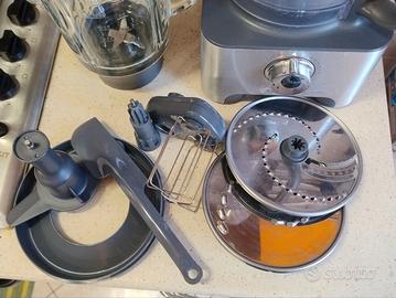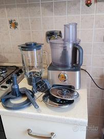 Robot da cucina Kenwood FDM78 in buone condizioni e perfettamente funzionante. Usato con cura. Può frullare, tritare, macinare, affettare e anche mescolare (per esempio per impasti per torte). Il coperchio del contenitore in plastica ha una piccola scheggiatura (visibile in foto) che non influisce in alcun modo sul funzionamento. Lo vendo solo perché mi trasferisco all'estero, altrimenti continuerei ad usarlo. Ritiro a mano a Torino.