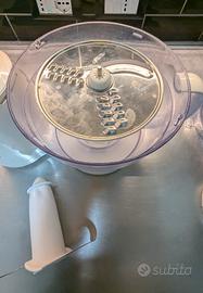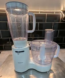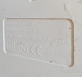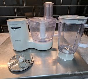 Vendo robot da cucina multifunzione Kenwood FP510 Series in ottime condizioni e perfettamente funzionante. È un alleato completo per la cucina, ideale per tritare, grattugiare, affettare e frullare. Caratteristiche principali: Potenza: 600W (motore potente e affidabile). Sistema Dual Drive: Doppia postazione per utilizzare il contenitore processor o la caraffa frullatore. Velocità: 2 velocità selezionabili + funzione Pulse (P) per il massimo controllo. Accessori inclusi (come da foto): Ciotola capiente per tritare e impastare. Caraffa frullatore per smoothie, vellutate e bevande. Disco in acciaio inox reversibile (per affettare e grattugiare). Lama in acciaio per tritare. Il robot è stato pulito e testato. Presenta normali segni di utilizzo sulle plastiche che non ne compromettono affatto il funzionamento.