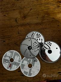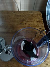 Con accessori: dischi affetta/grattugia, lama, spingi-alimenti. Il modello ha una capienza di 2,1 litri.