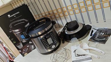 Funziona come friggitrice ad aria, pentola a pressione, cottura lenta, girarrosto, cuociriso, yogurtiera, sous-vide, grill, cottura e saltare. Prezzo super scontato x piccolo difetto come da foto
