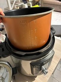 Robot da cucina multifunzione Due coperchi per pentola a pressione e friggitrice ad aria e Griglia per cottura a vapore Possibilità di fare cotture sottovuoto e yogurt Usato ma in buone condizioni Ha dei segni di usura sul fondo del cestello No scatola Consegno anche a milano in zona bisceglie capolinea metro rossa