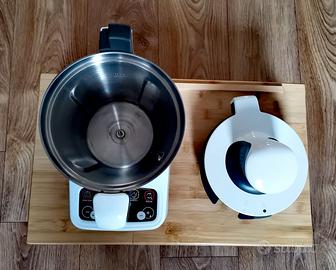 Robot da cucina MOULINEX praticamente nuovo. Potenza motore: 1.000 Watt. 5 programmi automatici. Boccale con capacità pari a 3 litri. Materiale recipiente: acciaio inossidabile lucidato. Pannello comandi chiaro e intuitivo. Selettore velocità manuale. Accessori in dotazione: tritatutto lama in acciaio inox, accessorio per mescolare, frusta per emulsionare, accessorio per impastare.