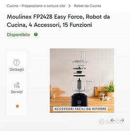 Moulinex Easy Force, Robot da Cucina e Frullatore, 4 Accessori, 15 Funzioni, 800 W di potenza, Facile e Veloce da Usare, Salvaspazio, Lavabile in lavastoviglie, FP2428